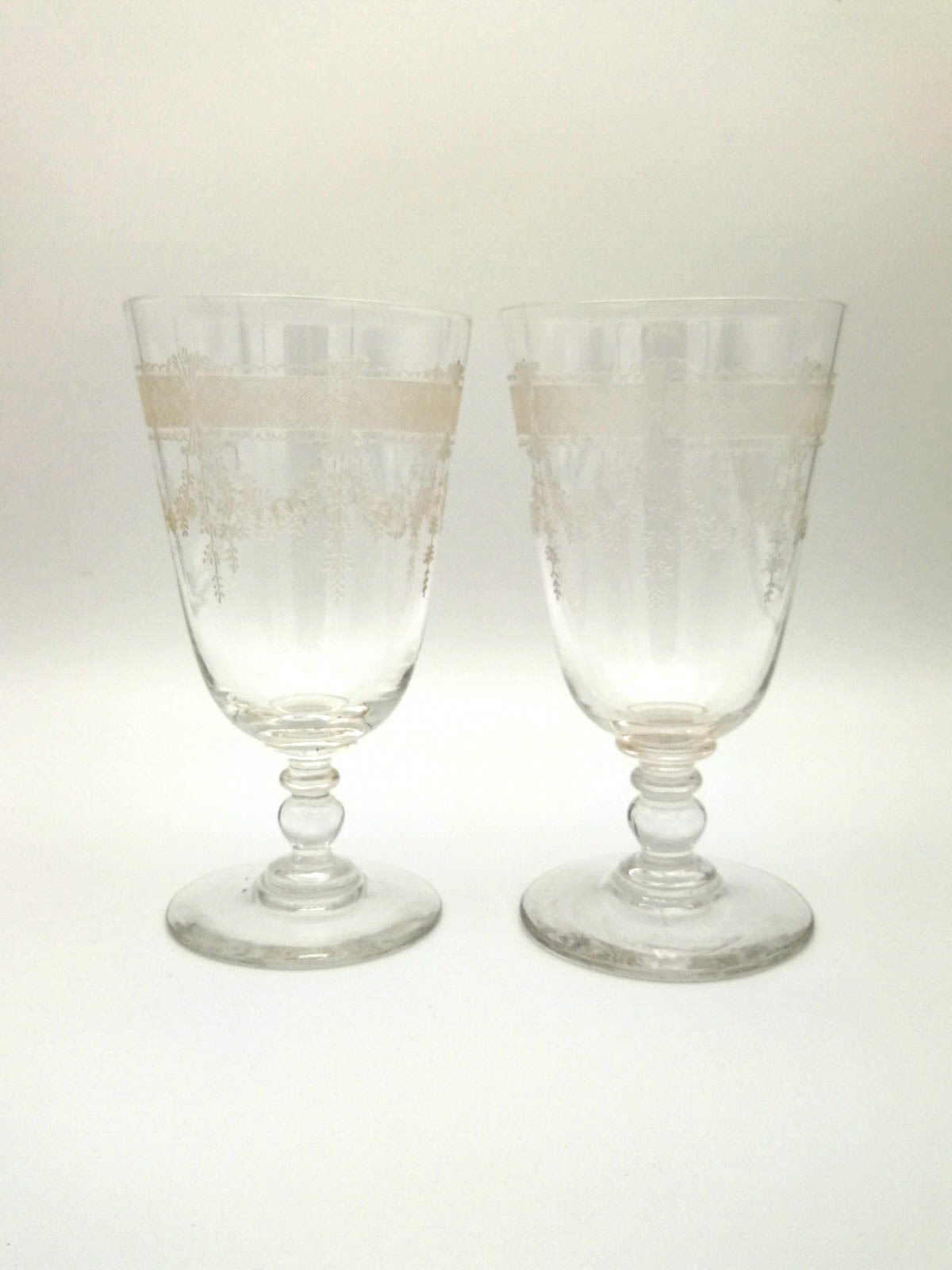 Dünnwandige Jugendstil Weingläser, um 1900.