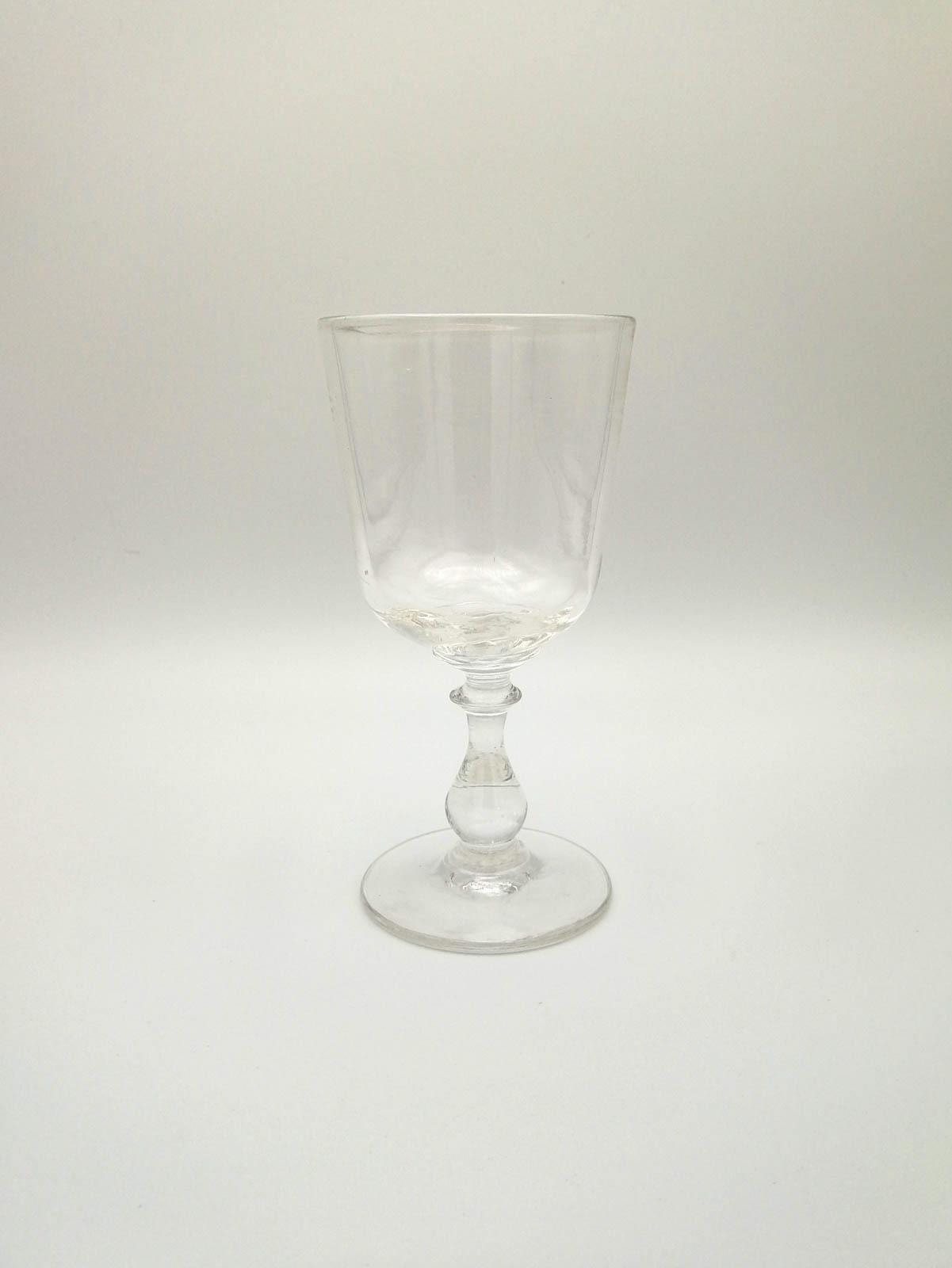 Farblos. Konische Kuppe auf Schaft mit Mittelnodus