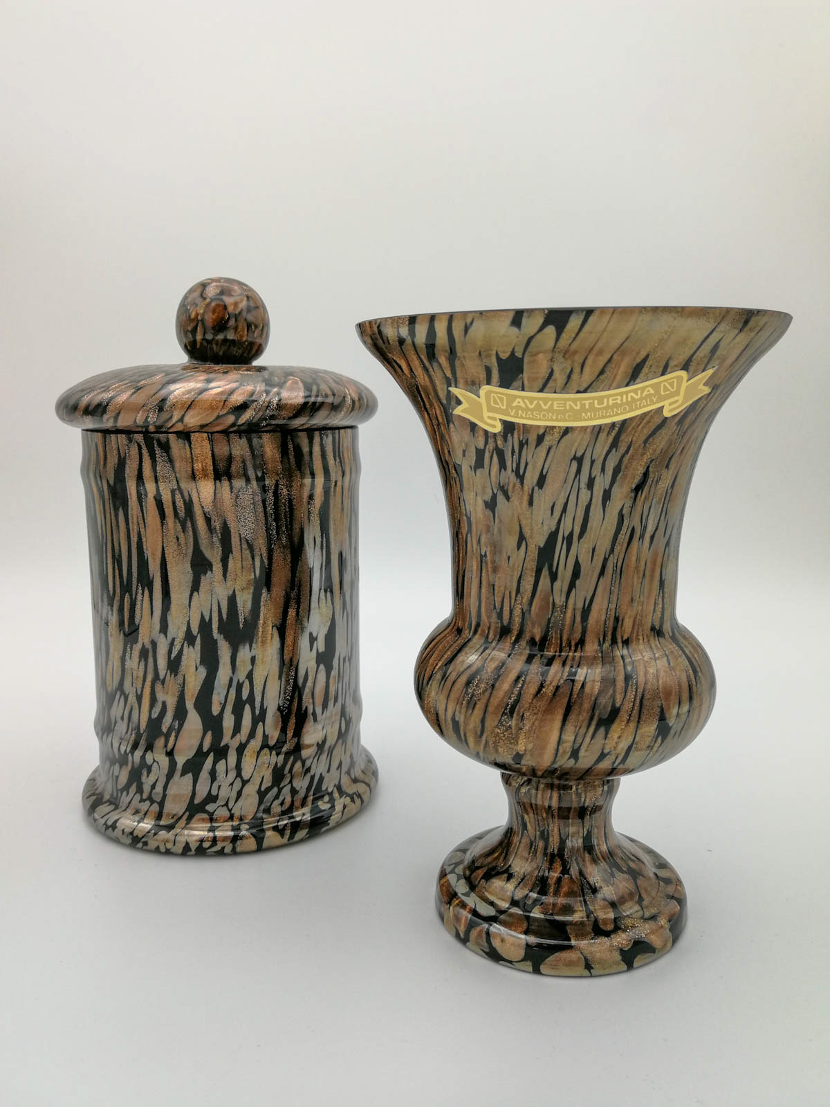 Die Serie Avventurina, ist auf den Entwerfer Vincenzo Nason zurückzuführen und verführt durch schwarzes Glas mit Kupfer Einschmelzungen.