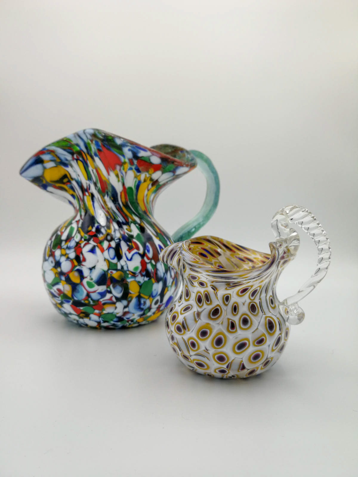 Farbenfrohe handgezogene Glasobjekte, Dekor Millifiori.