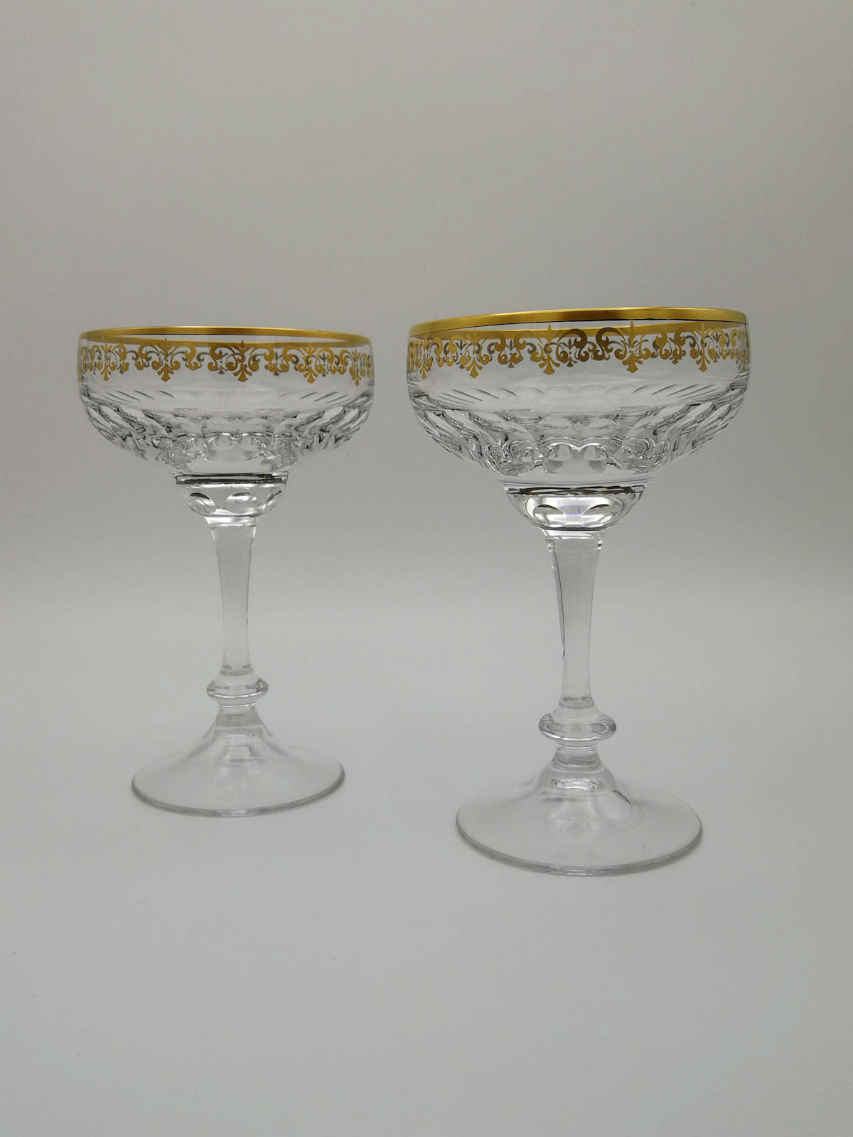 Kristallglasschalen mit verziertem Goldrand für Süsswein und Liköre.