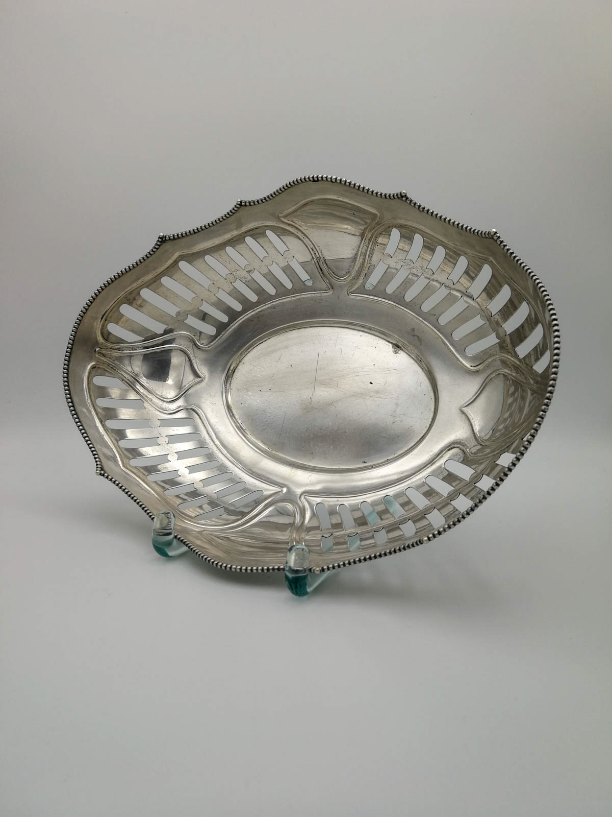 Diese fein gearbeitete Schale in 800er Silber, unterliegt der charmanten Form des späten Jugendstils.