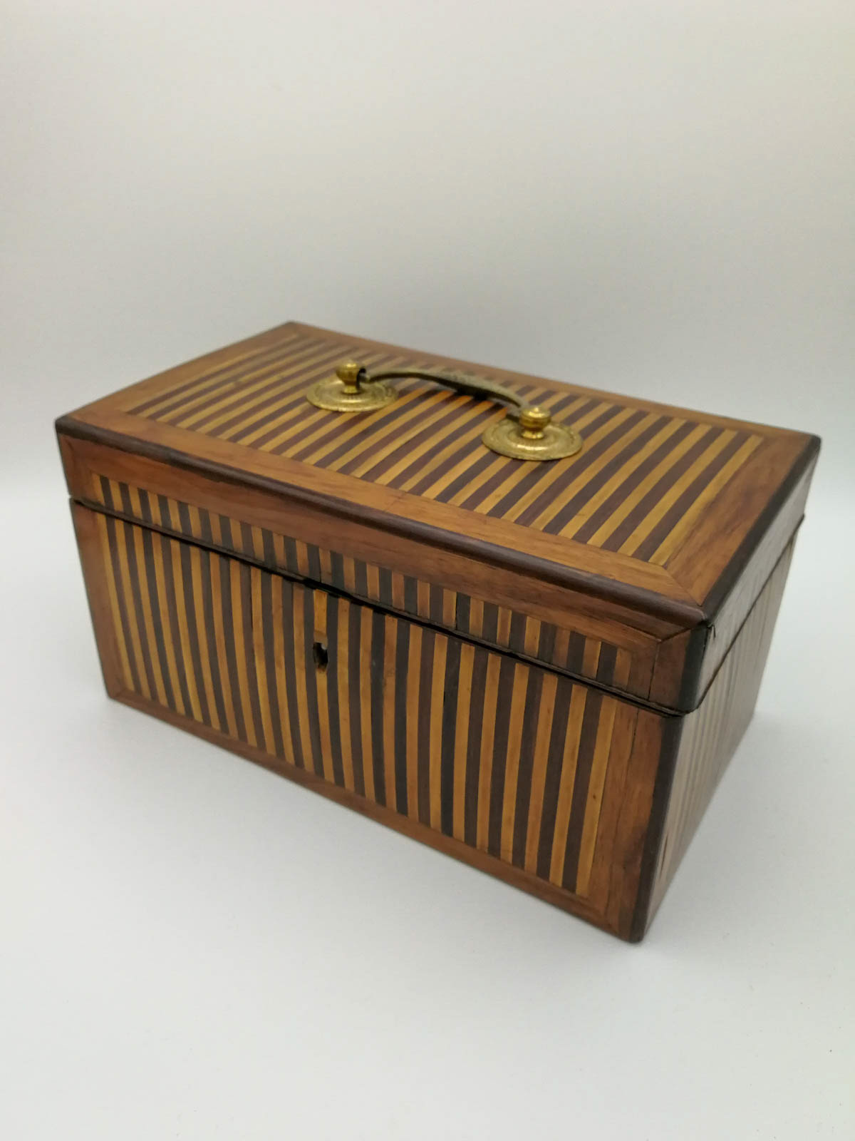 Aufwendig intarsiertes Holzkästchen mit Messing Beschlägen.