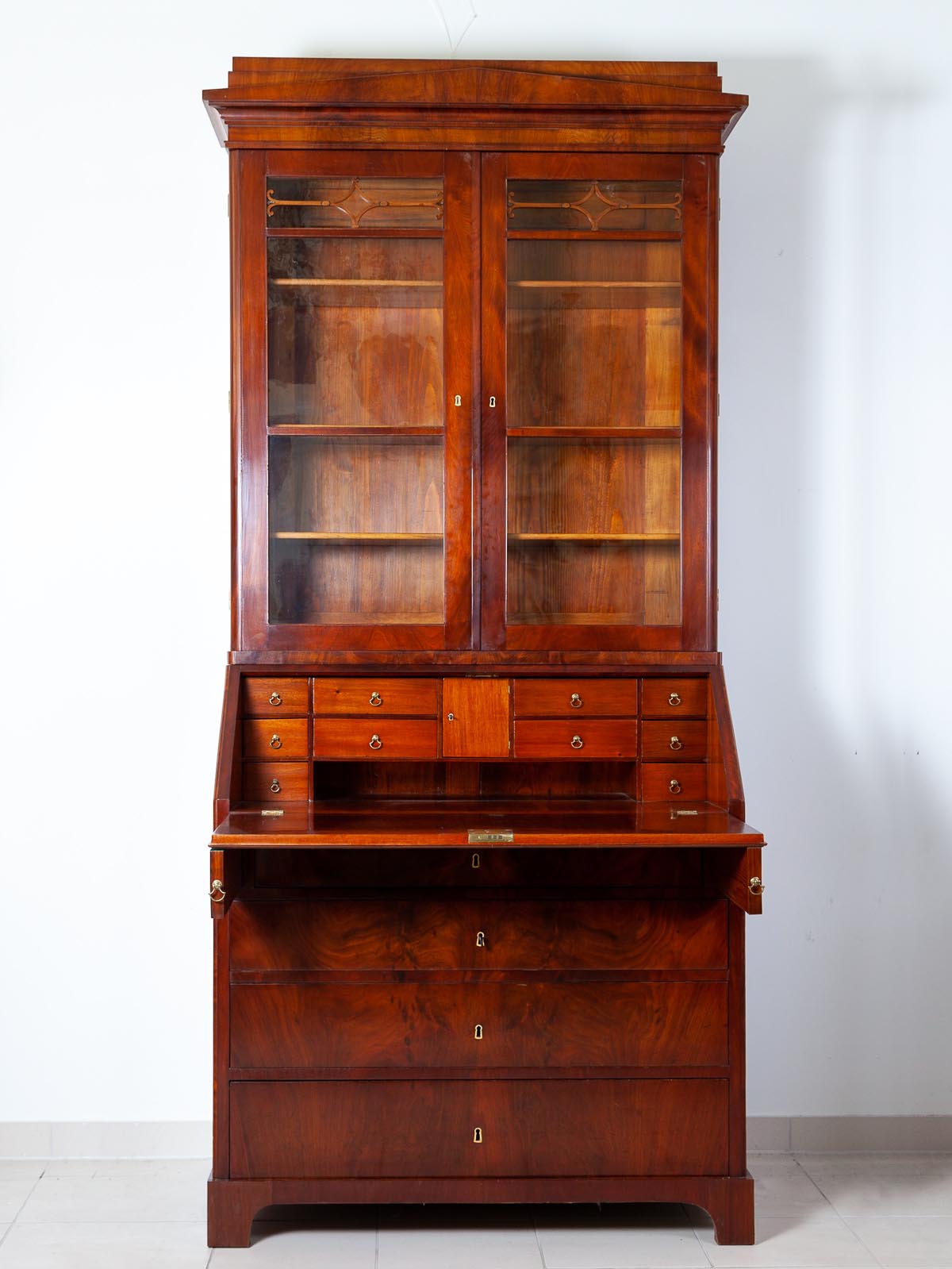 Schinkeldach, Pyramidenmahagoni furniert, originalem Glas